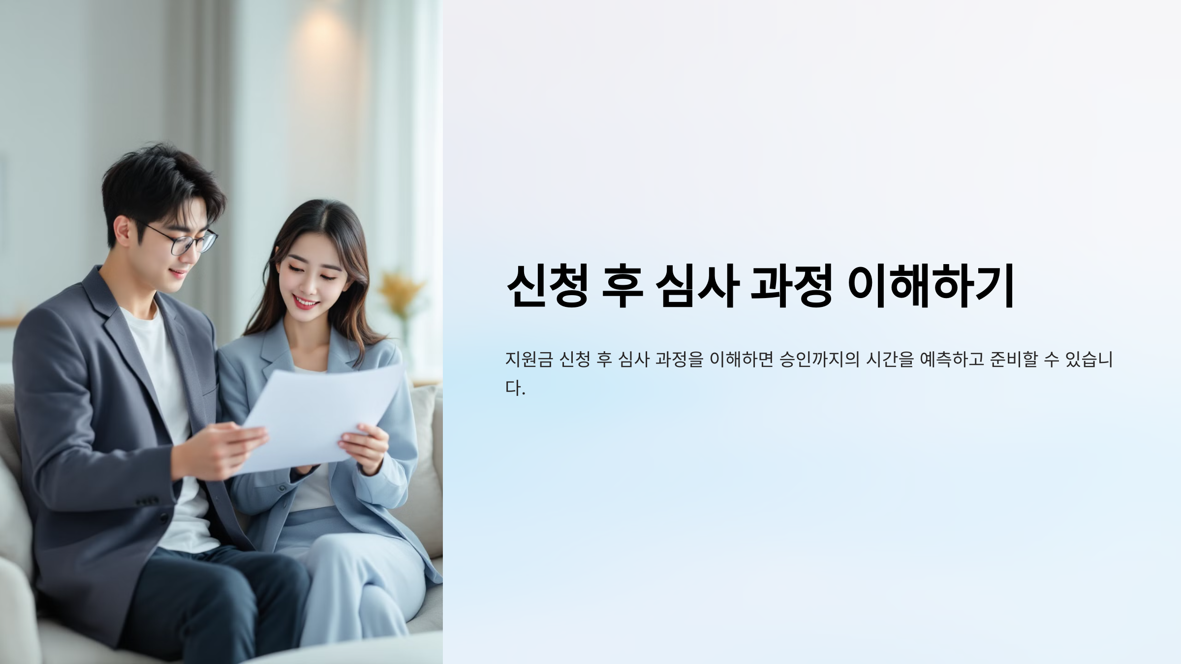 4. **최종 승인**: 심사 통과 시 지원금 지급이 결정됩니다. 이 단계의 처리 속도도 기관마다 다를 수 있습니다.