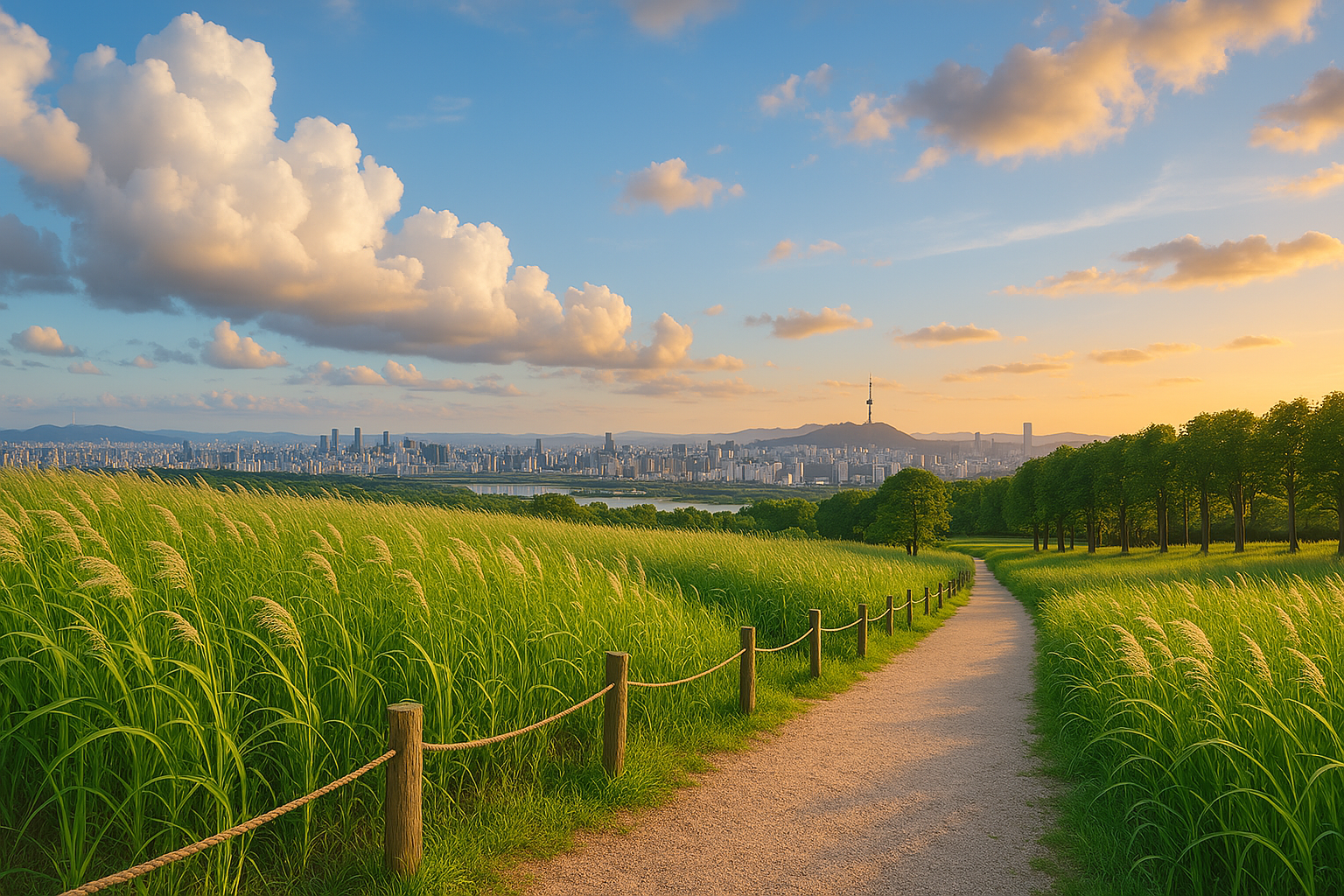 매년 가을 억새축제로 유명한 하늘공원은 사계절 내내 아름다운 전망을 자랑합니다. 2025년 봄에는 푸르른 초록 빛 아래에서 피크닉을 즐길 수 있는 완벽한 장소입니다.