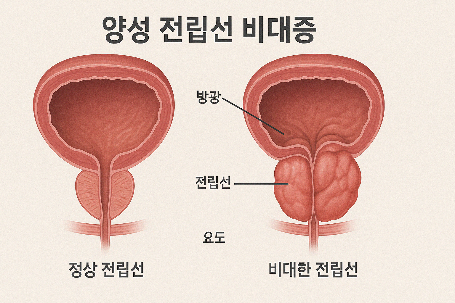 전립선은 남성의 방광 아래에 위치한 호두 크기의 샘으로, 정액의 일부를 생성하는 역할을 합니다. 나이가 들면서 전립선이 자연스럽게 커지는 현상을 양성 전립선 비대증(BPH)이라고 해요. 이는 암과는 다른 양성 질환으로, 일반적으로 50대 이상 남성의 약 50%, 80대 이상에서는 90% 이상이 경험하는 매우 흔한 상태입니다.