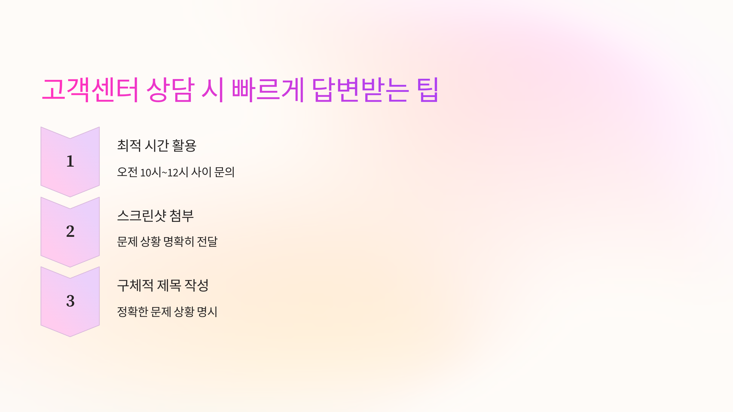 | 정확한 문의 제목 작성 | "로그인 오류"보다는 "크롬 브라우저에서 로그인 오류 발생"처럼 구체적으로 작성하세요. |