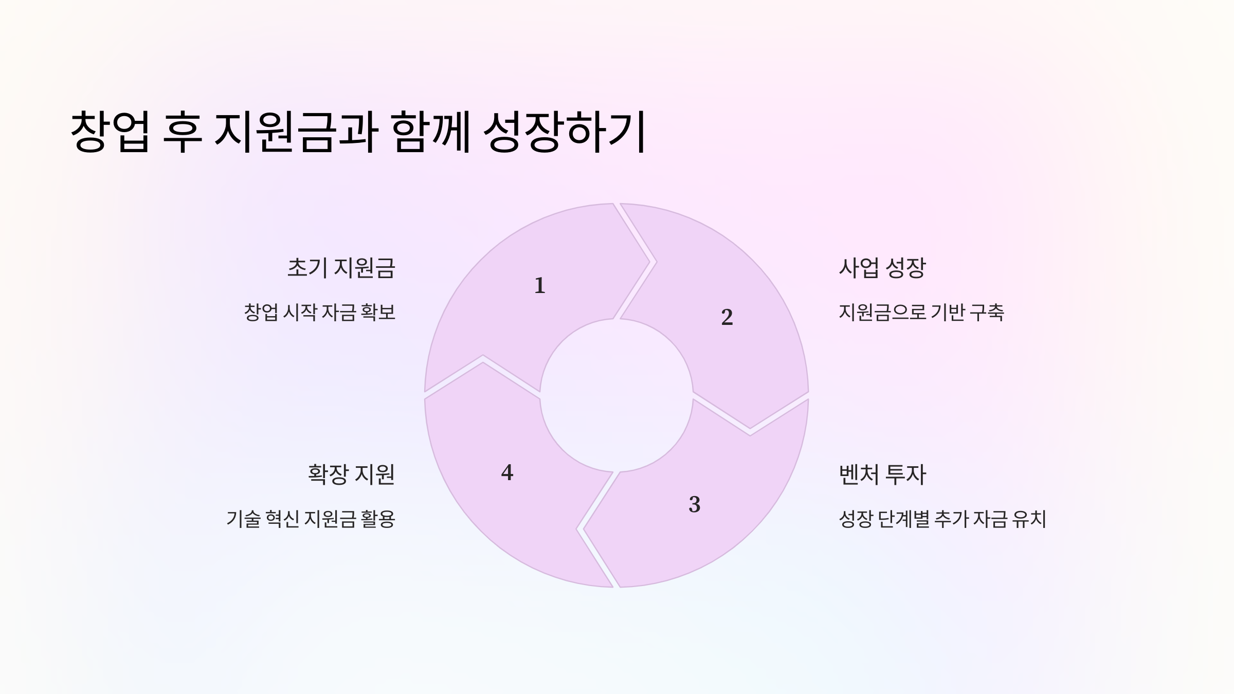 창업 이후에도 정부에서 제공하는 다양한 지원 프로그램이 있는 것으로 알려져 있습니다. 사업이 성장 단계에 접어들면, **벤처 투자**나 **기술 혁신 지원금** 등을 신청할 수 있는 자격 요건을 갖추게 될 수 있습니다.