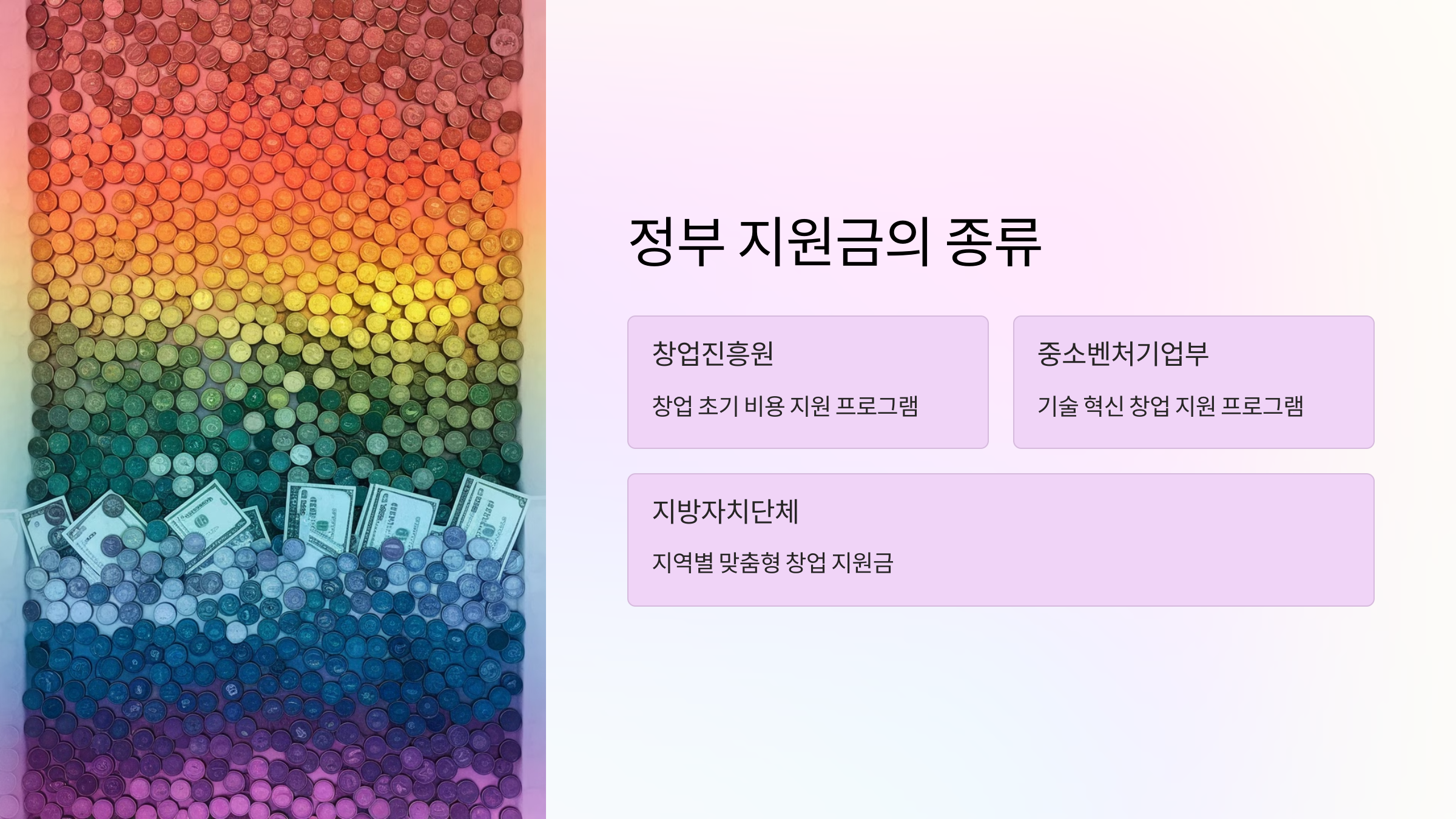 정부 지원금은 초기 창업자들에게 중요한 자금원이 될 수 있습니다. 중소벤처기업부와 창업진흥원 등의 자료에 따르면, 많은 성공적인 스타트업들이 초기에 정부 지원 프로그램의 도움을 받은 것으로 알려져 있습니다.