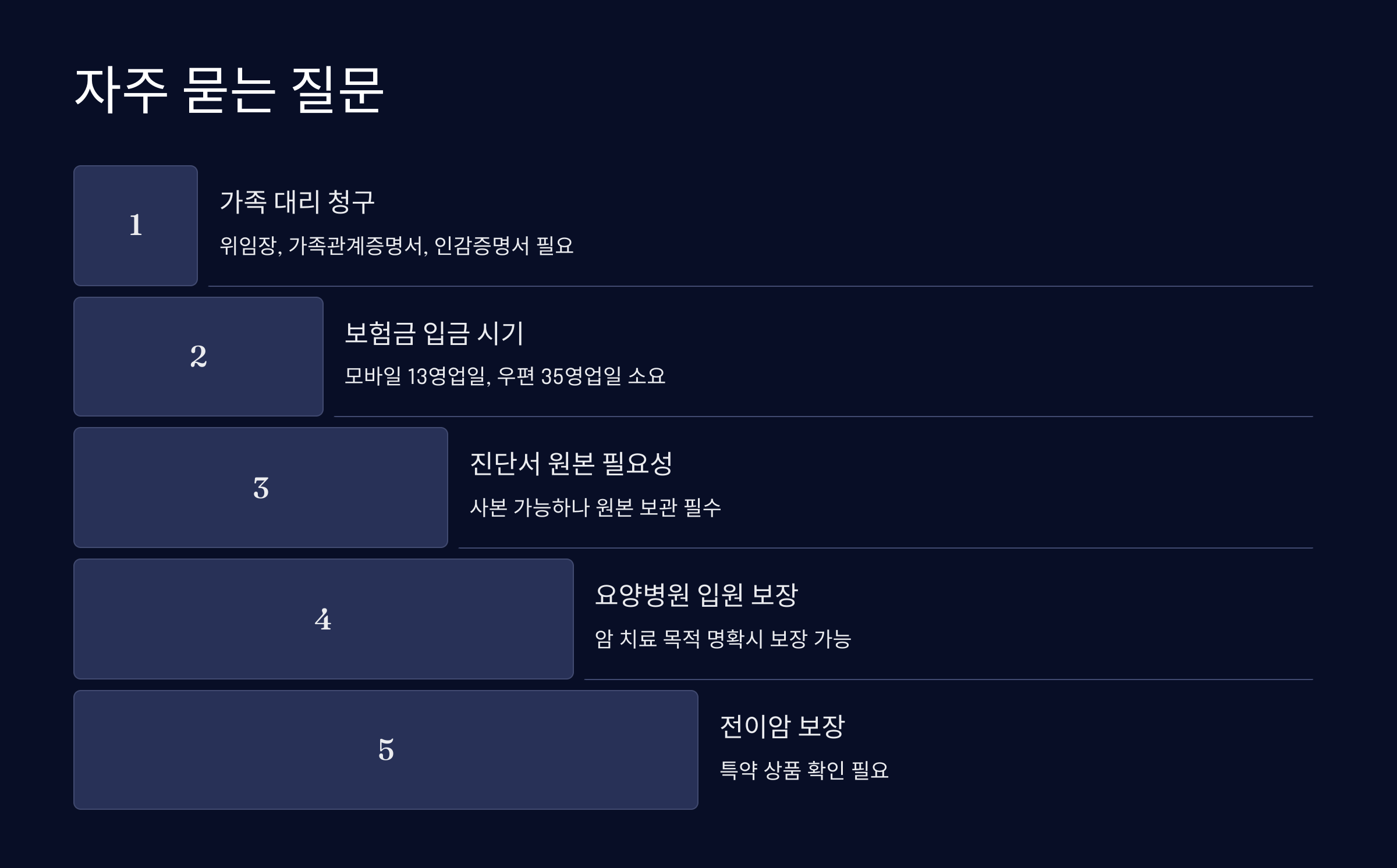 - 유사암/소액암은 일반암 대비 보장금액이 낮을 수 있으므로 약관 확인 필수