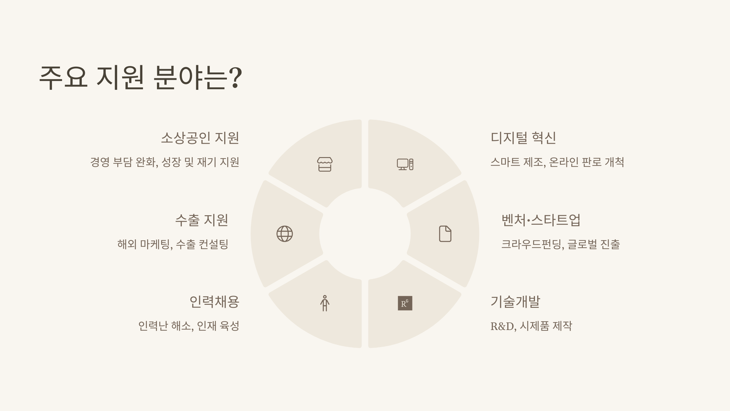 - 수출 지원: 해외 마케팅 및 수출 컨설팅