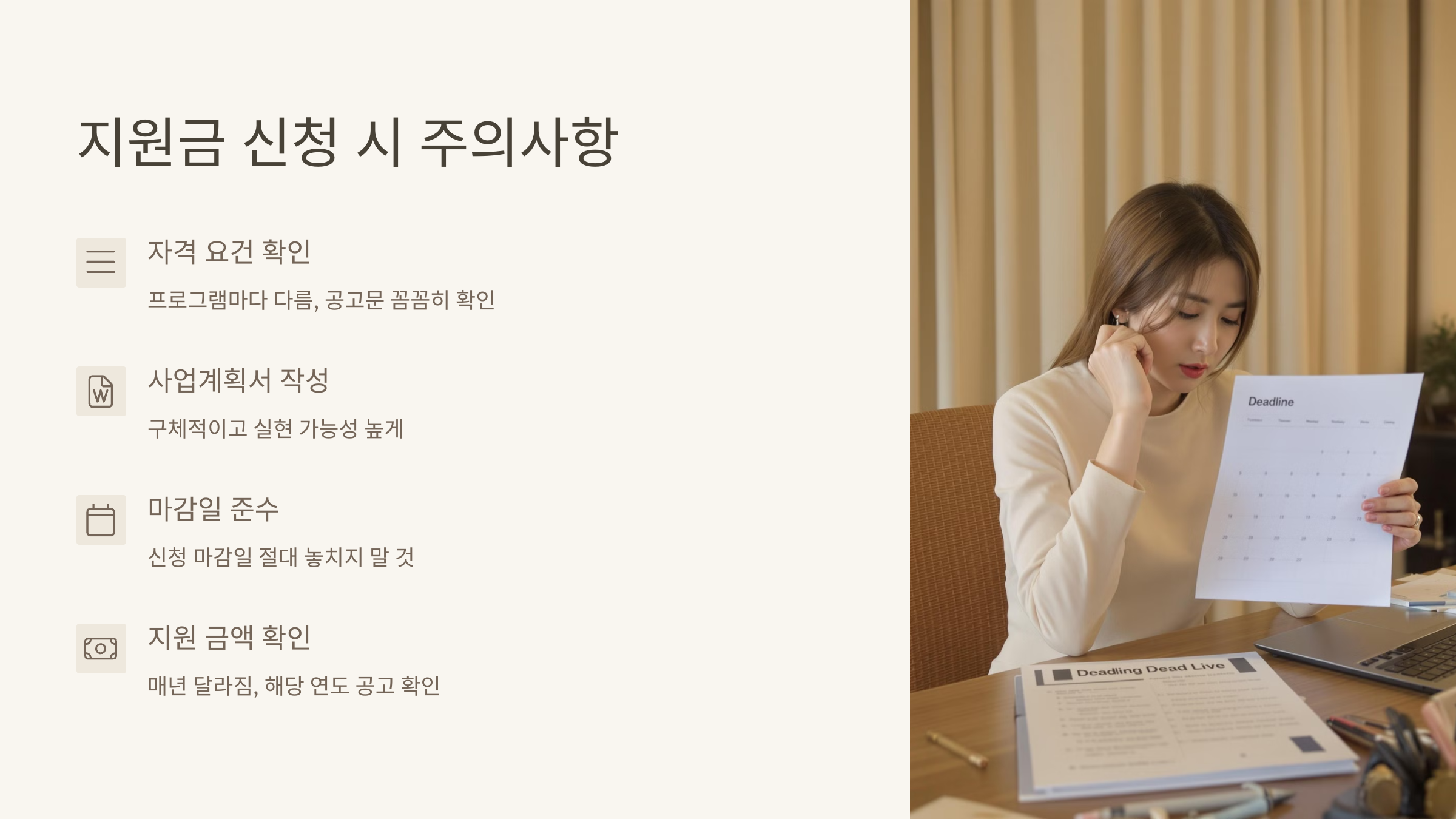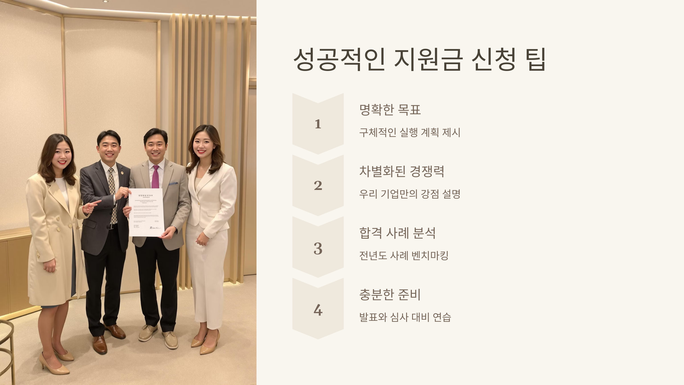* 지원 프로그램마다 자격 요건이 다른 경우가 많으므로, 공고문을 자세히 검토하는 것이 도움이 될 수 있습니다.