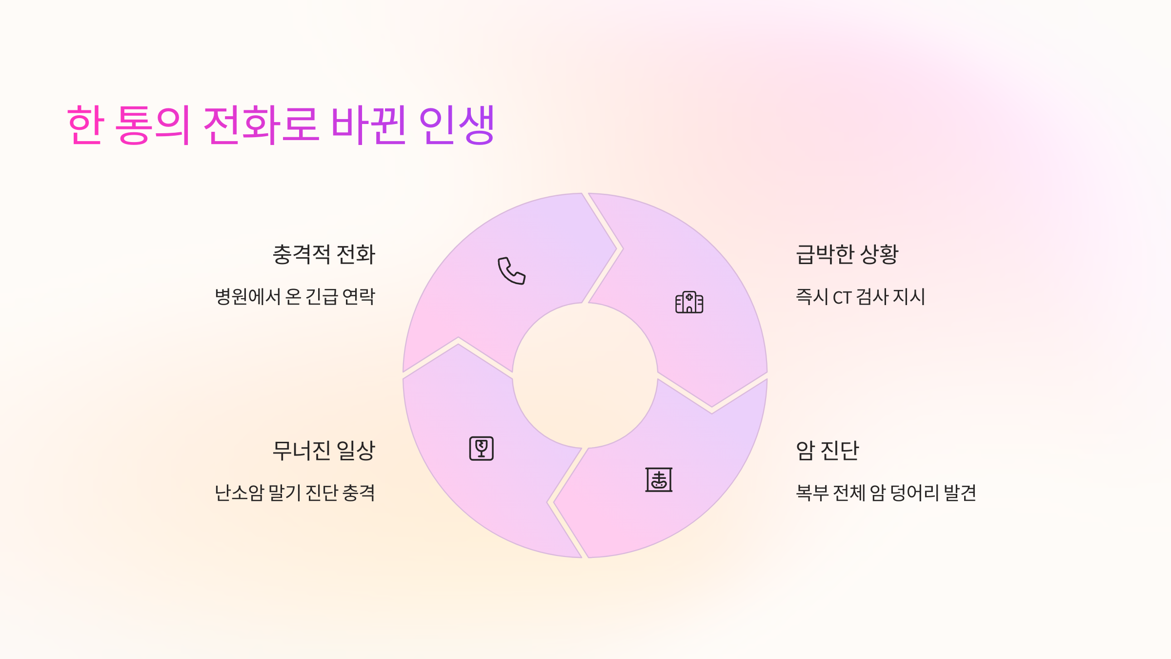 그 순간, 세상이 무너지는 느낌이었습니다. '내가? 난소암?' 도대체 어떻게 이런 일이 일어났는지 이해할 수 없었어요.