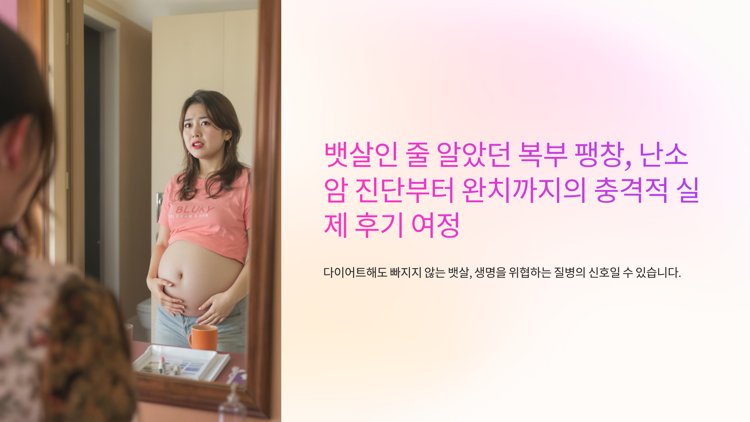 - 복부 팽만감은 가장 흔한 증상 중 하나지만, 많은 여성들이 단순 체중 증가나 나이 탓으로 오해한다.
