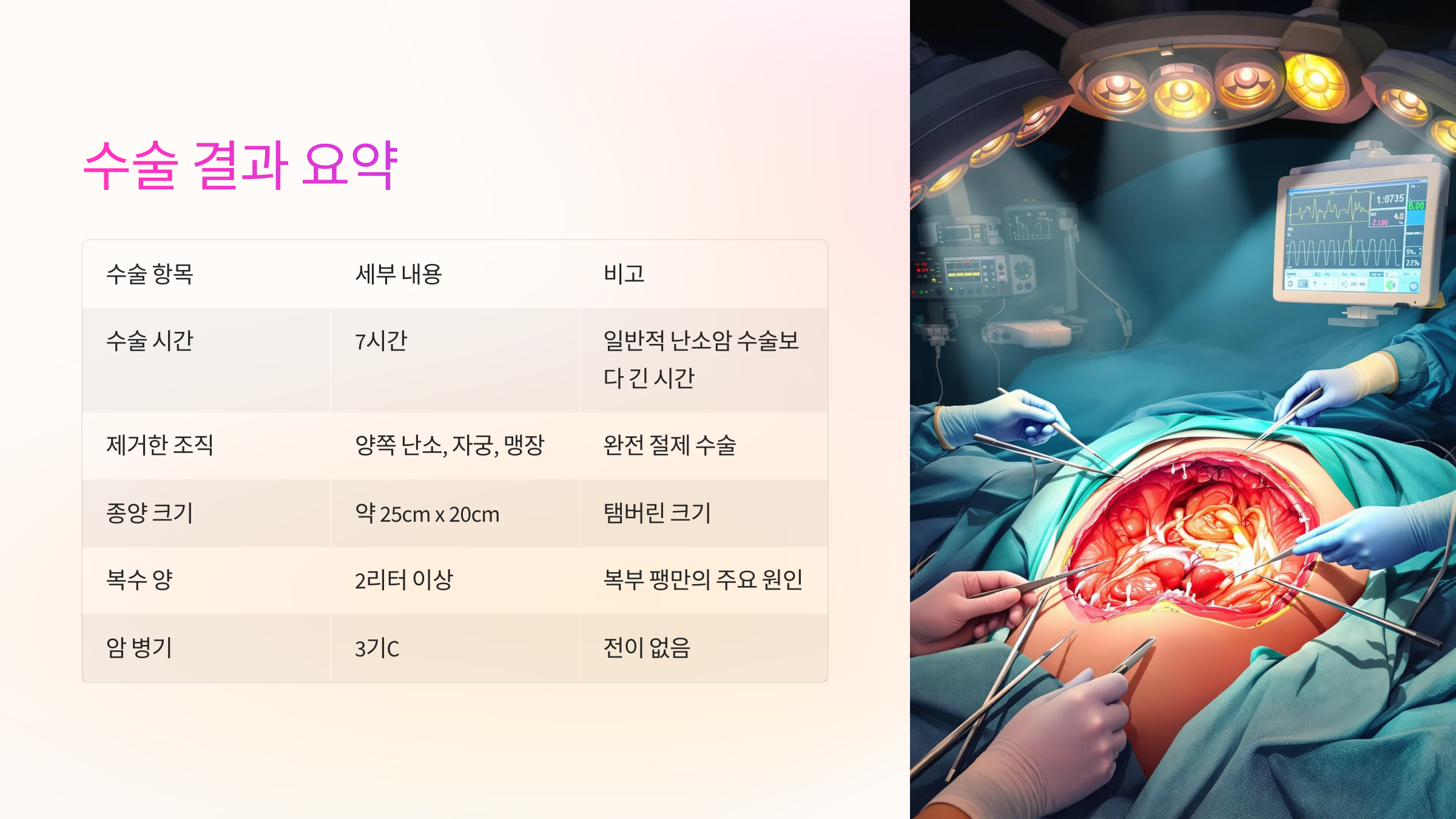 "복부 전체가 암 덩어리로 가득 차 있습니다. 난소암 말기 같네요."