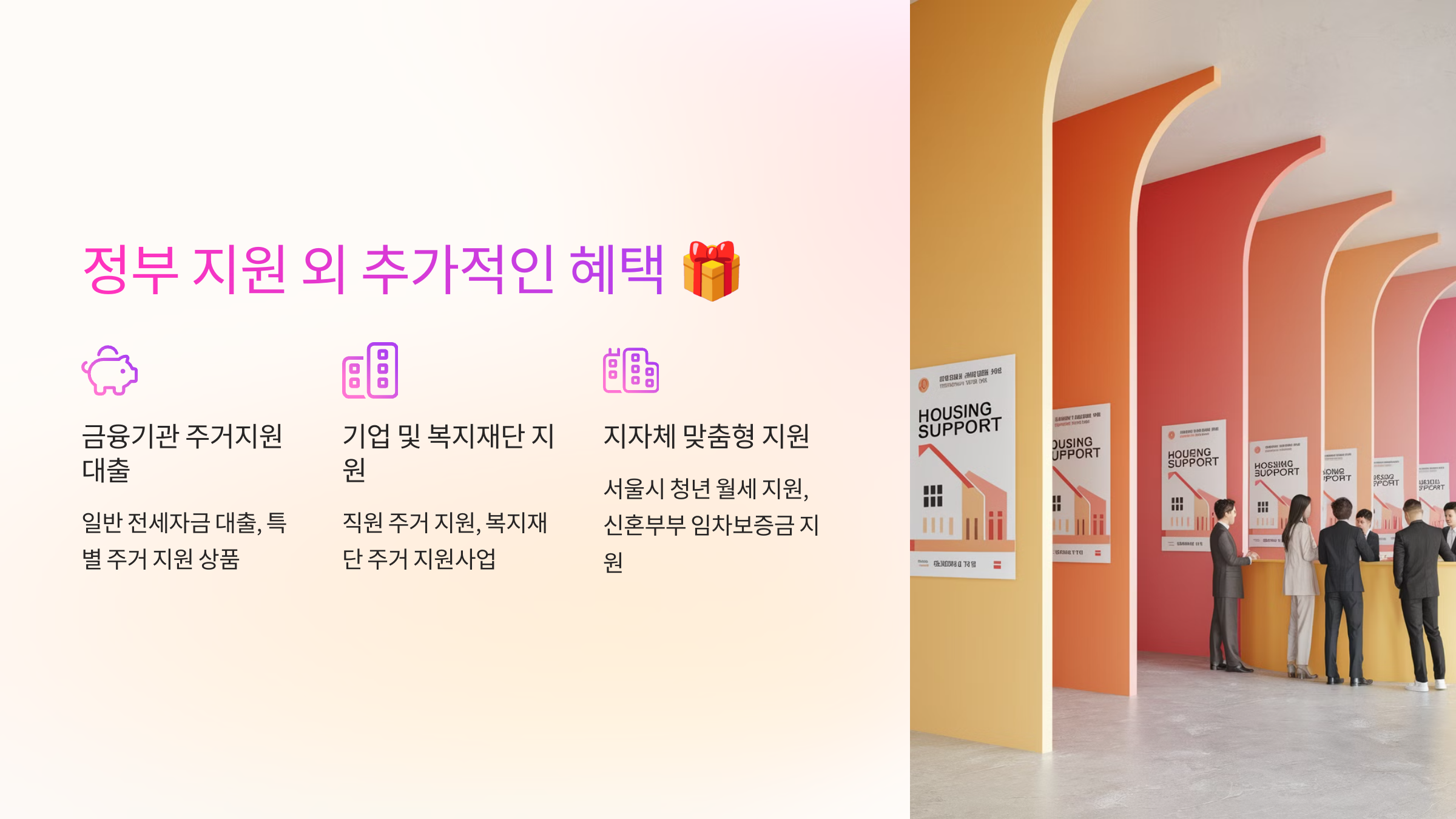 일반적으로 정부 지원 외에도 다양한 기관에서 제공하는 주거 지원 혜택이 있는 것으로 알려져 있습니다.